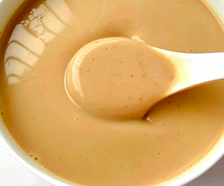 倒入碗里即可上桌享用啦,完全不需要过滤了,直接饮用更健康,膳食纤维含量更丰富,口感浓稠细腻,清甜不腻,当早餐喝再合适不过啦,比直接和黄豆浆更营养健康,营养也更全面,秋天女人可以多喝,丝滑浓郁,建议每天喝一碗,滋养气色,女人更美哦。除了女人,这也是一道老少皆宜的营养豆浆。