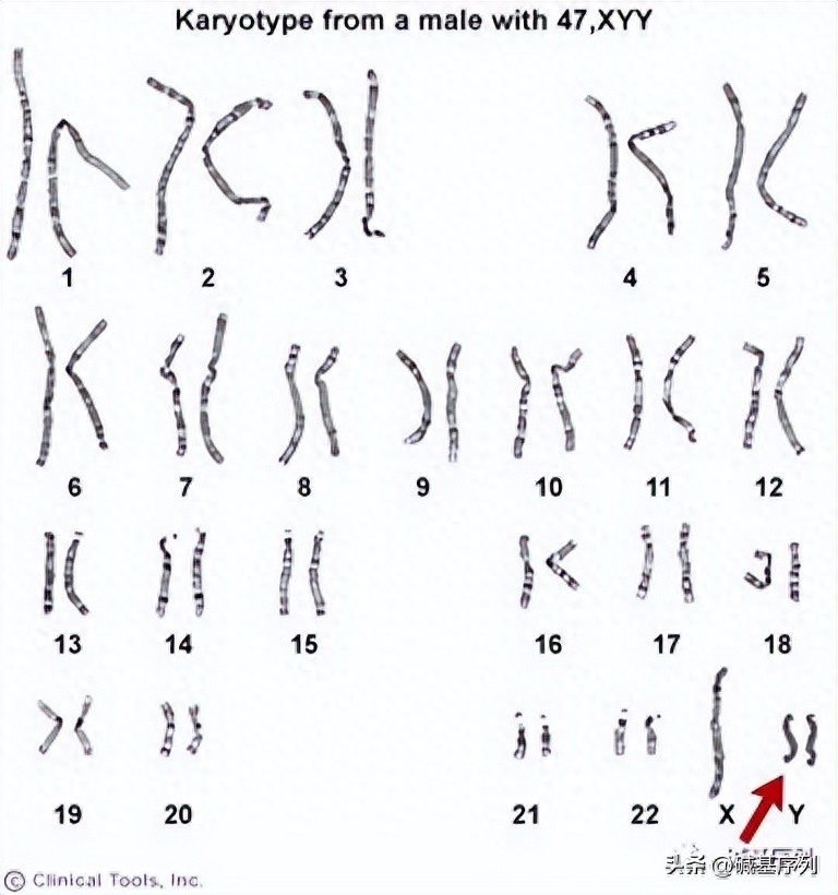 这通常是由于精子形成过程中错误的随机事件导致精子有两条Y染色体。当一个有两条Y染色体的精子与一个有一条X染色体的卵子受精时,产生的婴儿就是一个有两条Y染色体和一条X染色体的男性。或者在胚胎发育的早期也可能发生类似的随机事件。这可能会导致男孩的某些细胞有两条性染色体,而某些细胞有额外的Y染色体。